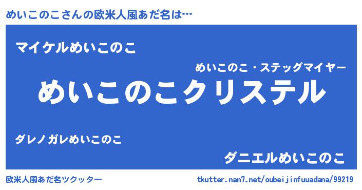 | 意味不明あだ名 | 『めいこのこフォーエバー』 |