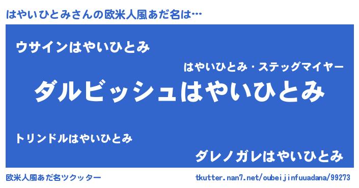 | 男性向けラノベタイトル風あだ名 | 『はやいひとみという概念が存在しない退屈な世界 』 |