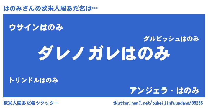 | ポケモン風あだ名 | 『ハーノイ』『ヒハノミ』『ハノゴンZ』 |