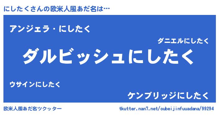 | 男性向けラノベタイトル風あだ名 | 『にしたくという概念が存在しない退屈な世界 』 |