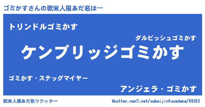 | 意味不明あだ名 | 『自称ゴミかす』『めかぶ科ゴミかす属』 |