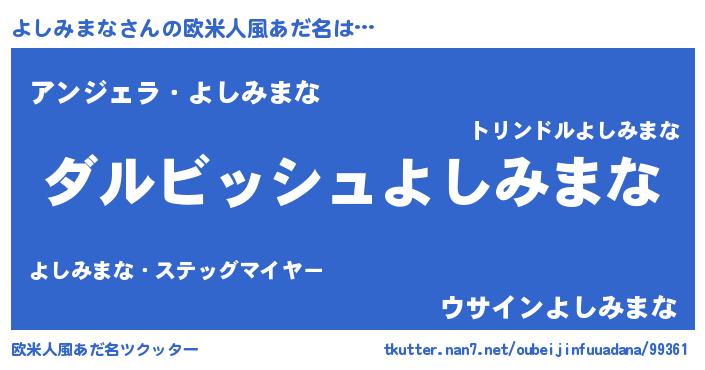 | ヘコむあだ名 | 『よしみまな(爆)』『よしっちょ』 |