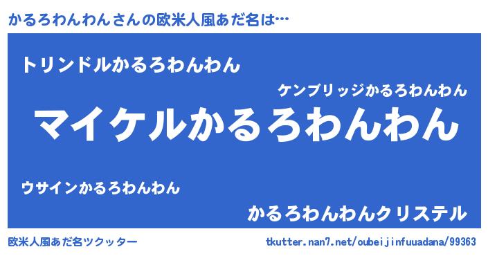 | 胡散臭い通販商品みたいなあだ名 | 『モテモテ間違いなし霊験あらたかなお札…その名も「かるろわんわん」』 |