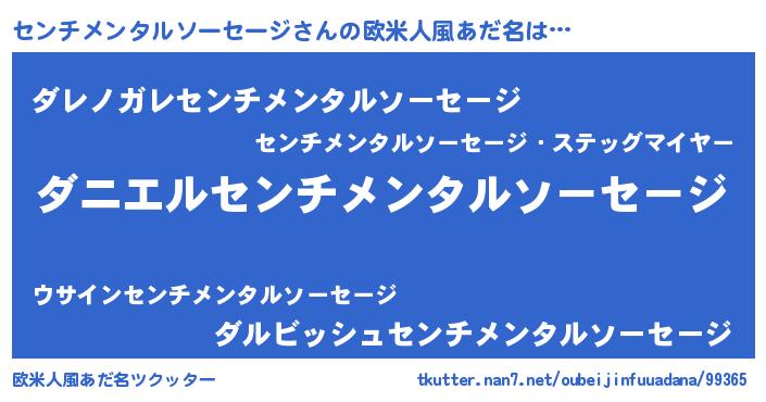 | 女子向けラノベタイトル風あだ名 | 『センチメンタルソーセージ恋絵巻』 |