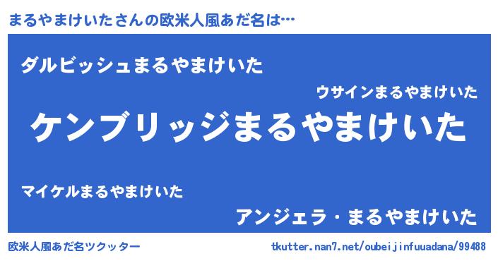| 男性向けラノベタイトル風あだ名 | 『Re:まるやまけいたから始める異世界生活』 |
