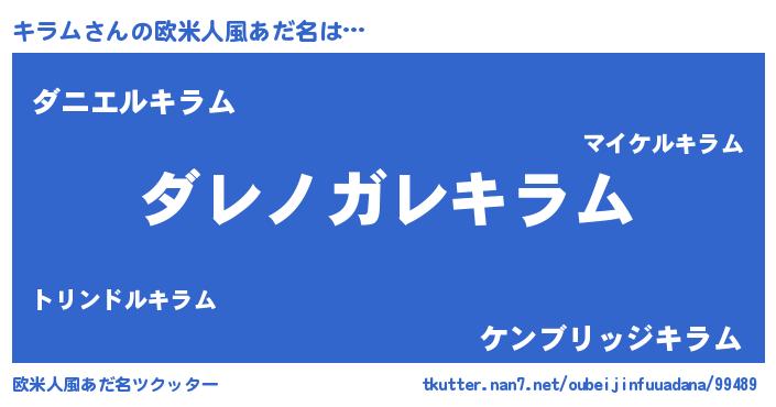 | 男性向けラノベタイトル風あだ名 | 『この素晴らしい世界にキラムを!』 |