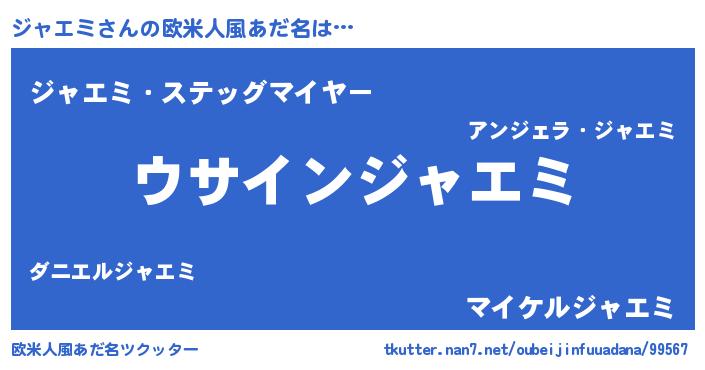 | 男性向けラノベタイトル風あだ名 | 『ジャエミの嫁は女の子じゃないと思った?』 |