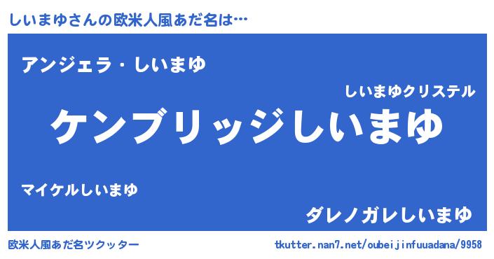 | 男性向けラノベタイトル風あだ名 | 『Re:しいまゆから始める異世界生活』 |