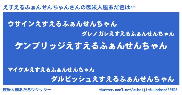 | 男性向けラノベタイトル風あだ名 | 『Re:えすえるふぁんせんちゃんから始める異世界生活』 |