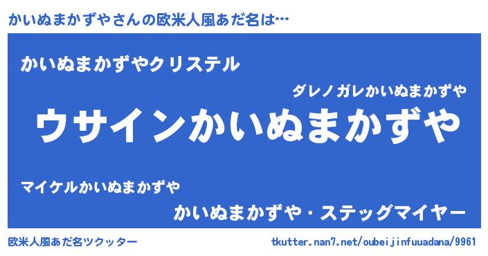 | 男性向けラノベタイトル風あだ名 | 『かいぬまかずやの嫁は女の子じゃないと思った?』 |