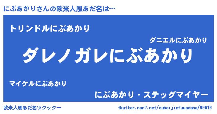 | 男性向けラノベタイトル風あだ名 | 『この素晴らしい世界ににぶあかりを!』 |