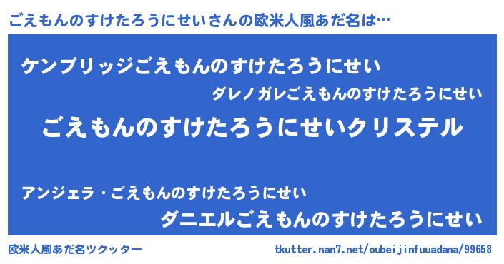 | 意味不明あだ名 | 『ごえもんのすけたろうにせいフォーエバー』 |