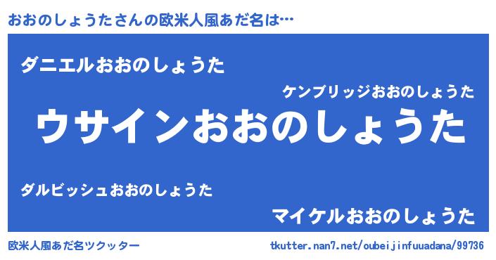 | 女子向けラノベタイトル風あだ名 | 『おおのしょうたの卵を拾いまして』 |