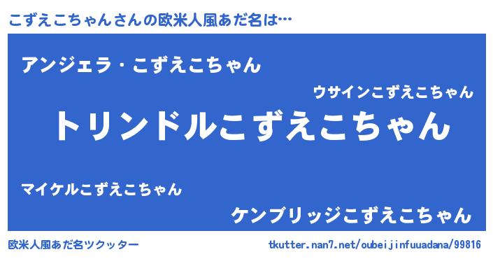 | 男性向けラノベタイトル風あだ名 | 『転生したらこずえこちゃんだった件』 |