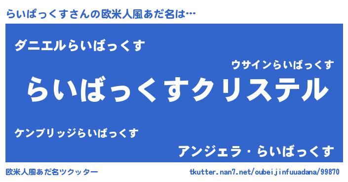 | 意味不明あだ名 | 『らいばっくすフォーエバー』 |