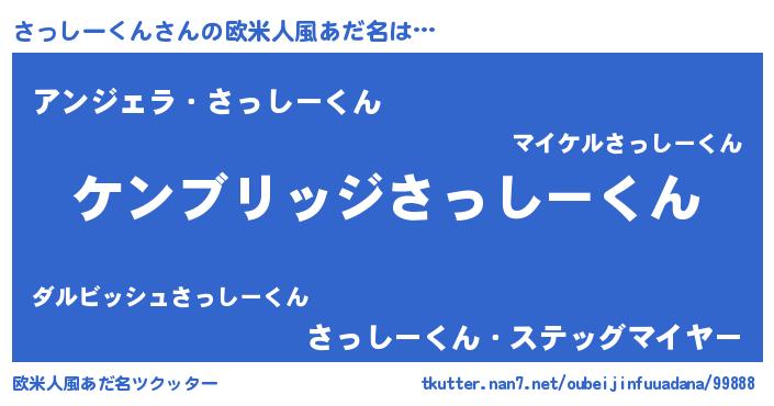 | 男性向けラノベタイトル風あだ名 | 『Re:さっしーくんから始める異世界生活』 |