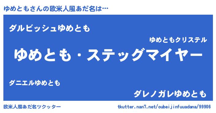 | ポケモン風あだ名 | 『メロユッメ』『ゼニユメ』 |