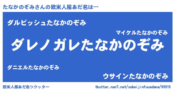 | 男性向けラノベタイトル風あだ名 | 『魔弾の王とたなかのぞみ』 |