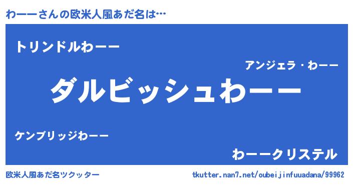 | 男性向けラノベタイトル風あだ名 | 『わーーという概念が存在しない退屈な世界 』 |