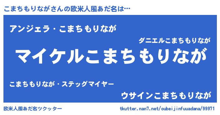 | 男性向けラノベタイトル風あだ名 | 『コマチモリナガアートオンライン』 |