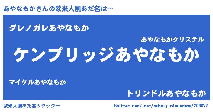 | 意味不明あだ名 | 『自称あやなもか』『ペロリンあやなもか』 |