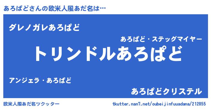 | 女子向けラノベタイトル風あだ名 | 『あろぱどの玉の輿計画!』 |
