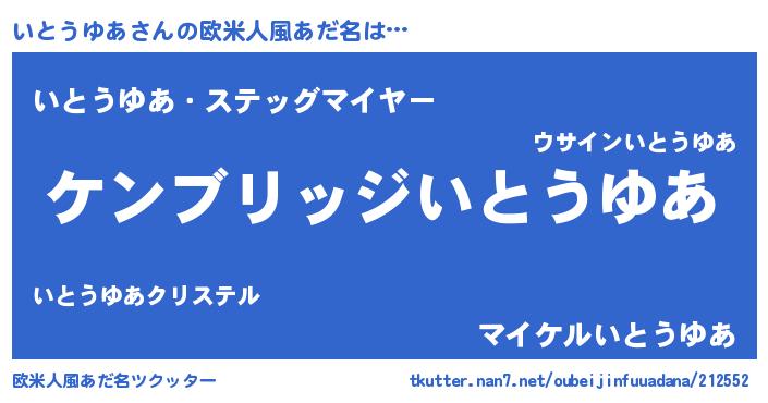 | 女子向けラノベタイトル風あだ名 | 『いとうゆあストレイドッグス』 |