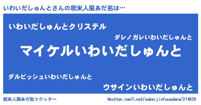 | 男性向けラノベタイトル風あだ名 | 『いわいだしゅんとの憂鬱』 |