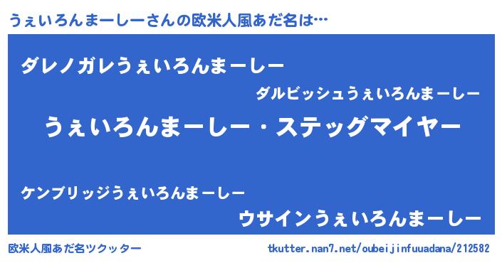 | 意味不明あだ名 | 『住所不定無職うぇいろんまーしー(43歳)』 |