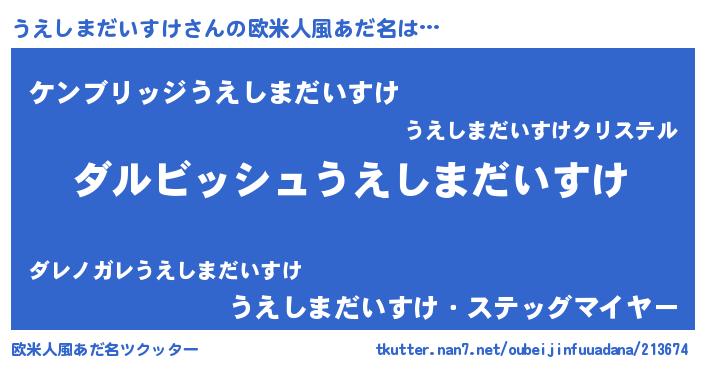 | 可愛いあだ名 | 『うえしまだいすけママ』『うえうちぇる』 |