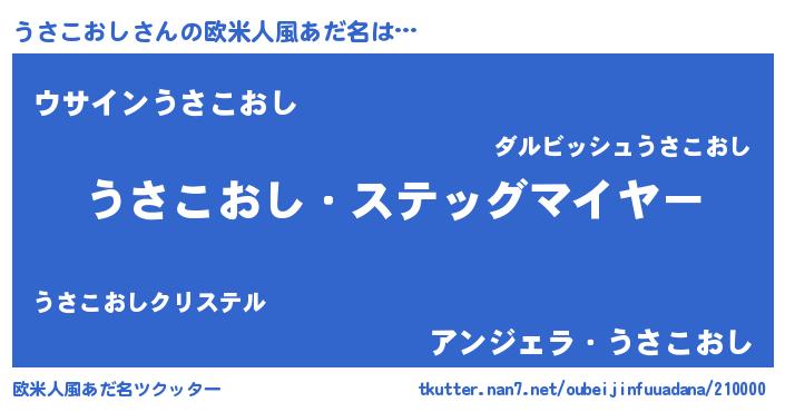 | ヘコむあだ名 | 『うさぷりん』『うさこおし(小並感)』 |