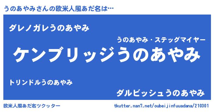 | 意味不明あだ名 | 『自称うのあやみ』『永久保存うのあやみ』 |