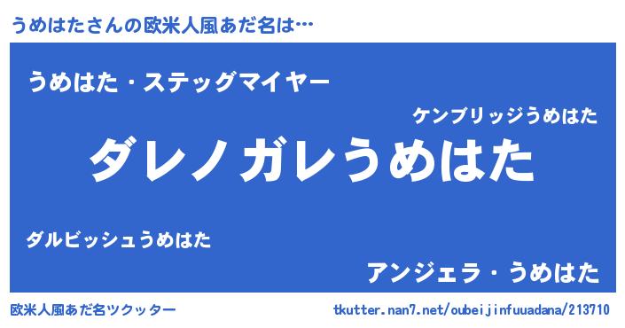 | 男性向けラノベタイトル風あだ名 | 『この素晴らしい世界にうめはたを!』 |