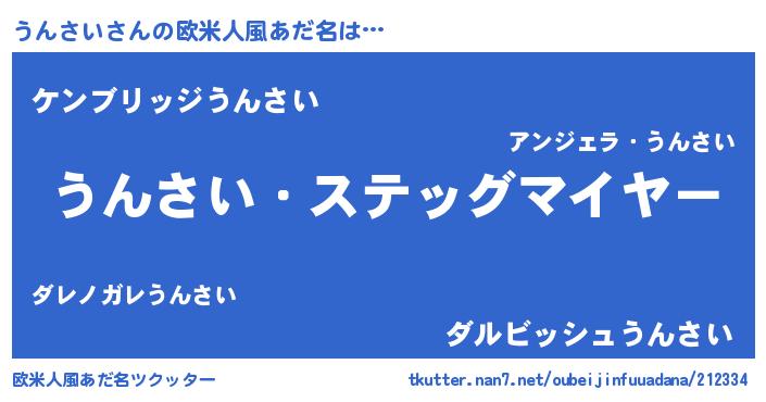 | 意味不明あだ名 | 『自称うんさい』『永久保存うんさい』 |