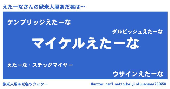 | 男性向けラノベタイトル風あだ名 | 『えたーなの憂鬱』 |