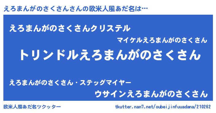 | 料理風あだ名 | 『えろまんがのさくさんとほうれんそうの和風グラタン』 |