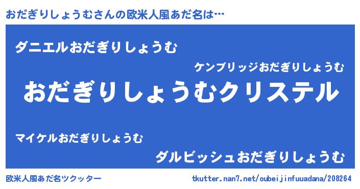 | 意味不明あだ名 | 『おだぎりしょうむフォーエバー』 |