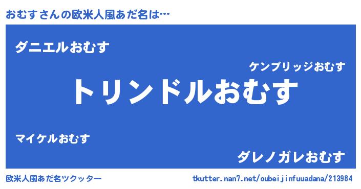 | 男性向けラノベタイトル風あだ名 | 『転生したらおむすだった件』 |
