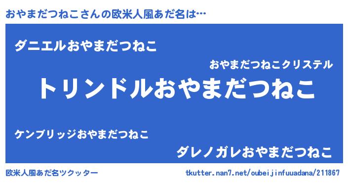 | 男性向けラノベタイトル風あだ名 | 『おやまだつねこ~年齢イコール彼女いない歴の魔法使い~』 |