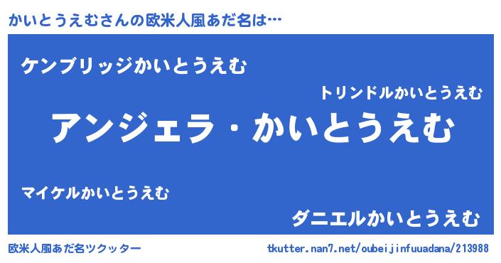 | 恥ずかしいあだ名 | 『カイトウエムデラックス』『かいっちょ』 |