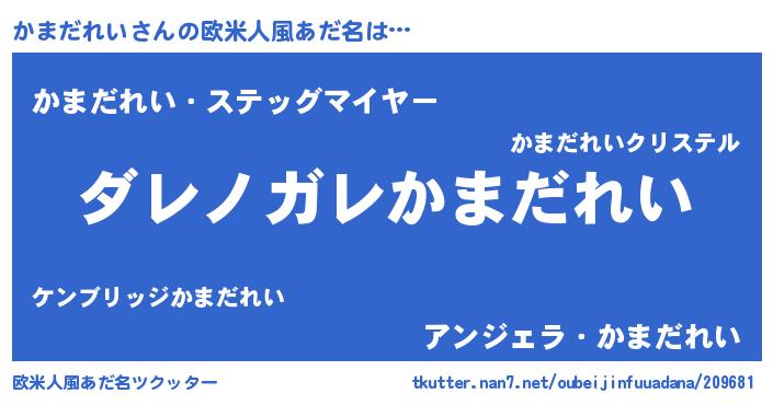 | 意味不明あだ名 | 『住所不定無職かまだれい(62歳)』 |