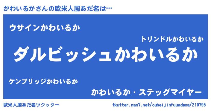 | 女子向けラノベタイトル風あだ名 | 『異世界で失敗しない100のかわいるか』 |