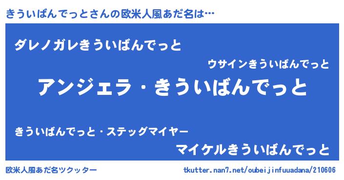| 意味不明あだ名 | 『住所不定無職きういばんでっと(74歳)』 |
