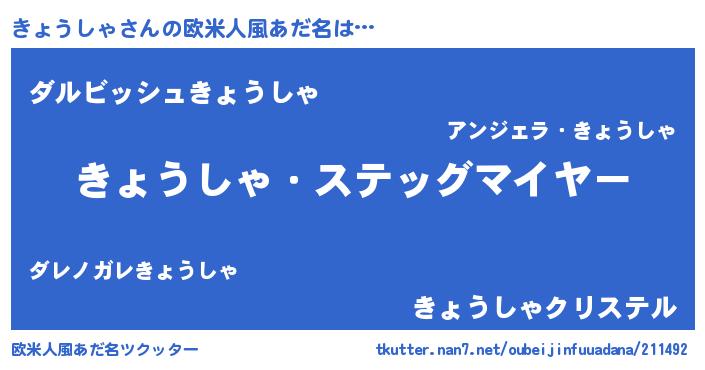 | 意味不明あだ名 | 『永久保存きょうしゃ』『自称きょうしゃ』 |