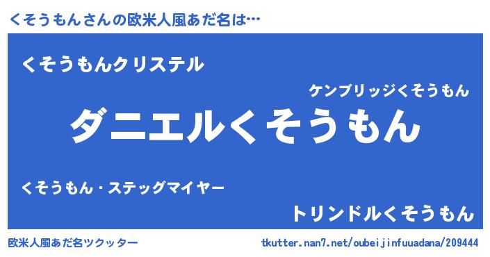 | 男性向けラノベタイトル風あだ名 | 『おまえをオタクにしてやるから、俺をくそうもんにしてくれ! 』 |