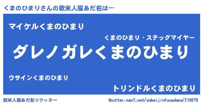 | 男性向けラノベタイトル風あだ名 | 『この素晴らしい世界にくまのひまりを!』 |