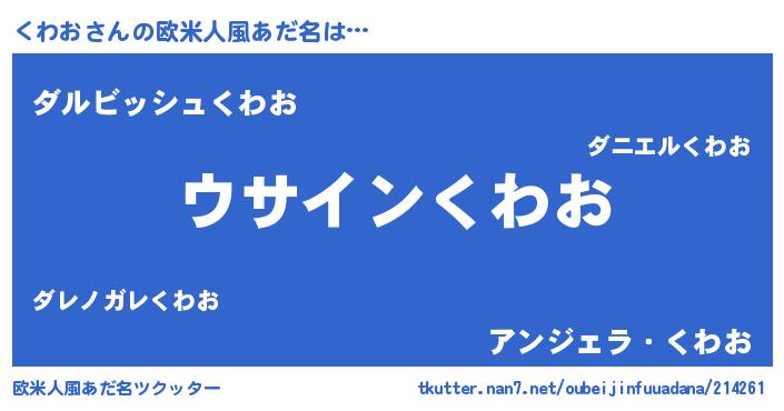 | 男性向けラノベタイトル風あだ名 | 『ダンジョンにくわおを求めるのは間違っているだろうか』 |