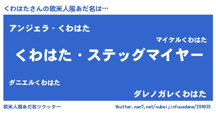 | ヒーロー風カッコイイあだ名 | 『仮面クワダー』『スーパークワハタ』 |
