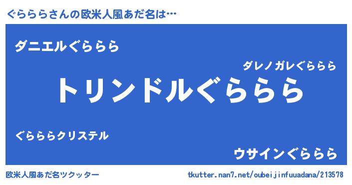 | 女子向けラノベタイトル風あだ名 | 『ぐらららの玉の輿計画!』 |