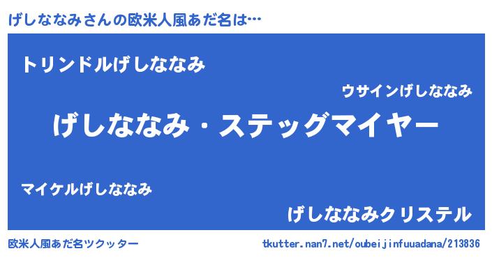 | 肩書あだ名 | 『げしななみ機長』『げしななみ少佐』 |